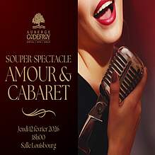 Souper-Spectacle "Amour & Cabaret" (12 février 2026) servi à la Salle Louisbourg. Ouverture des portes à 18h00.
