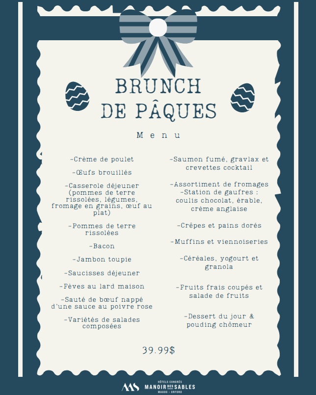 Venez savourer notre brunch spécial de Pâques le dimanche 5 avril de 7h à 13h30 !